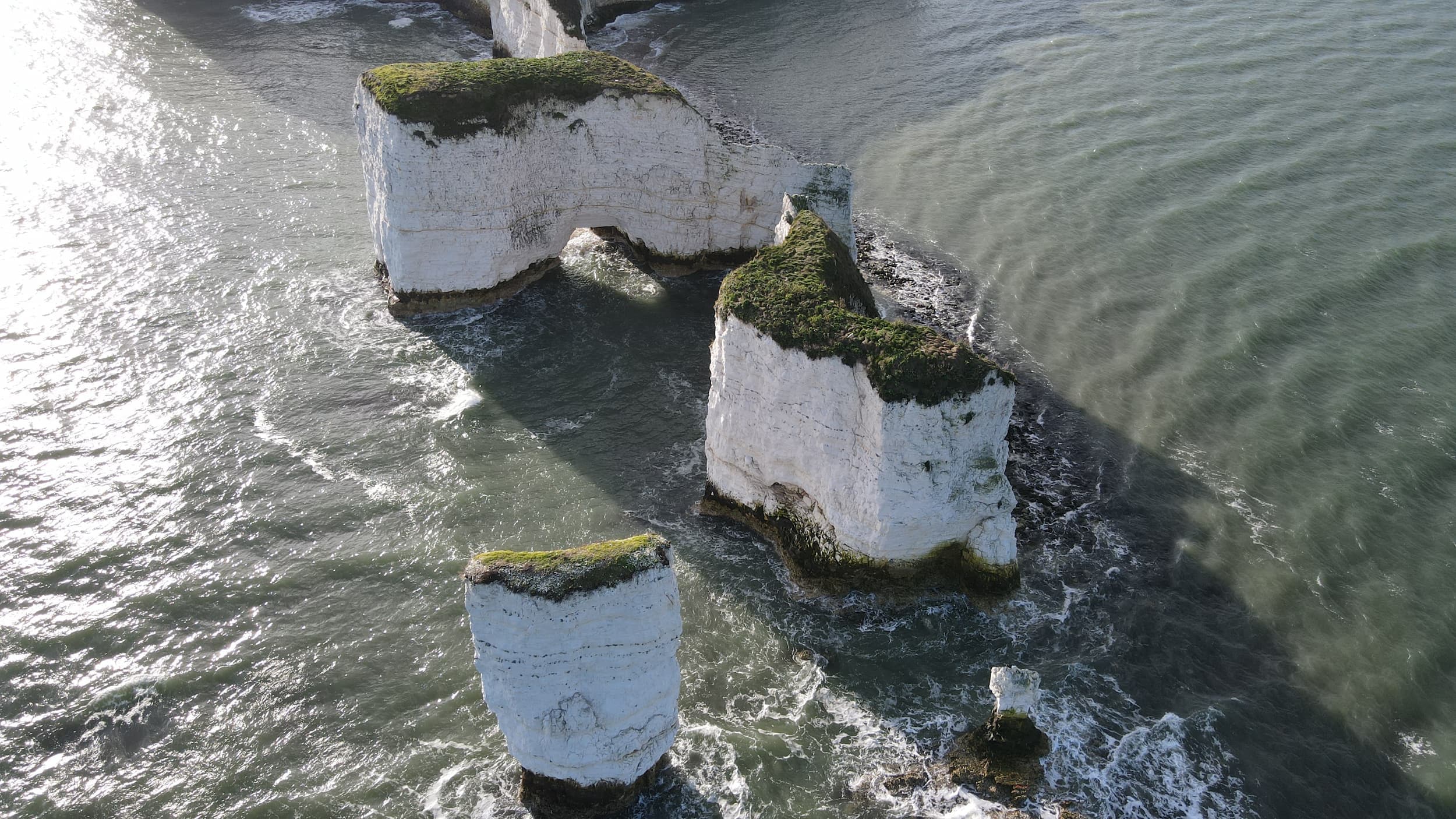 - What is it? A series of iconic chalk sea stacks and stumps.